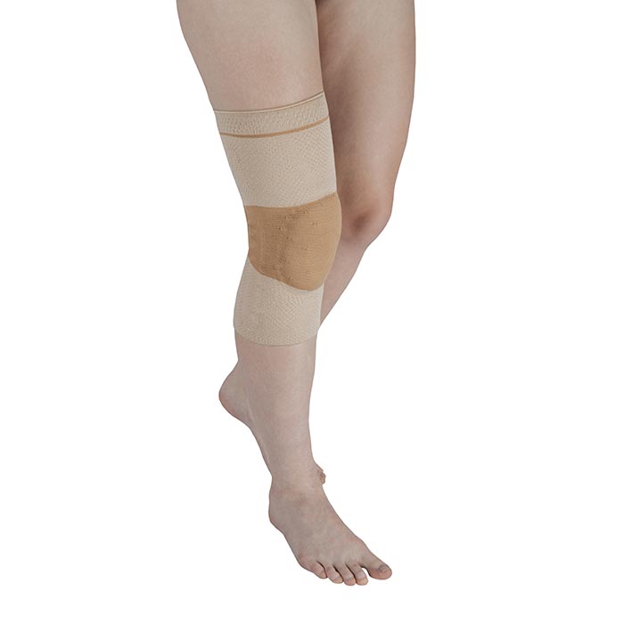 Бандаж надевается на ногу по типу чулка. При надевании изделия необходимо следить за тем, чтобы коленная чашечка была расположена прямо в отверстии. Ребра жесткости должны располагаться по боковым осям коленного сустава.